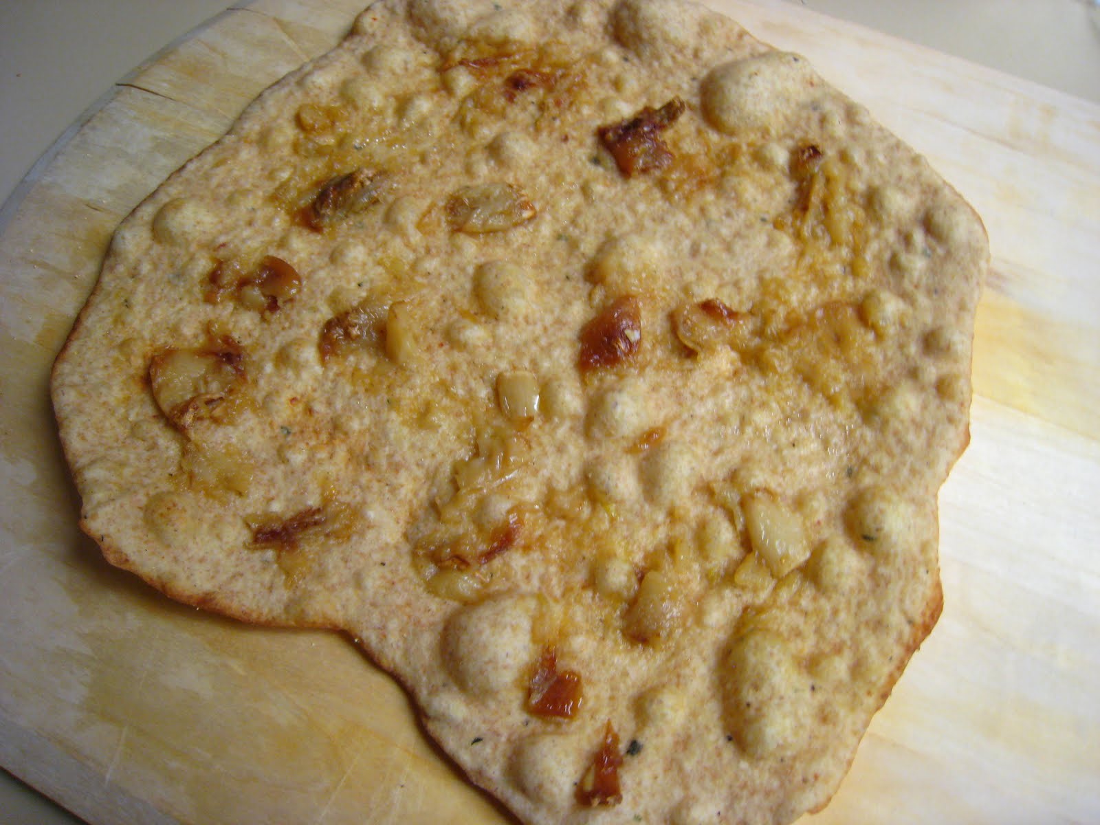 Pizza Dough recipe, in which I altered the flour content in following way: 2 cups unbleached white flour, 1.5 cups whole wheat flour. Also, I rolled each crust super thin and baked them at 425 on a pizza stone for approximately 5 minutes each. They will take more time if they are not incredibly thin, so be mindful of that.