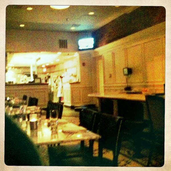 We split a spinach salad. I got snap happy with my hipstamatic app, so I know this salad does not look amazing, but it sure did taste good. Especially for a veggie lover like me who is trying so very hard to find veggies on menus here in the south. Spinach, goat cheese, kalamata olives, red onion, and tomato. What’s not to love? And, one thing I particularly appreciated was that there was no problem splitting the salad. Our waitress had it split in the kitchen and served on two plates. Thank you so much for that.